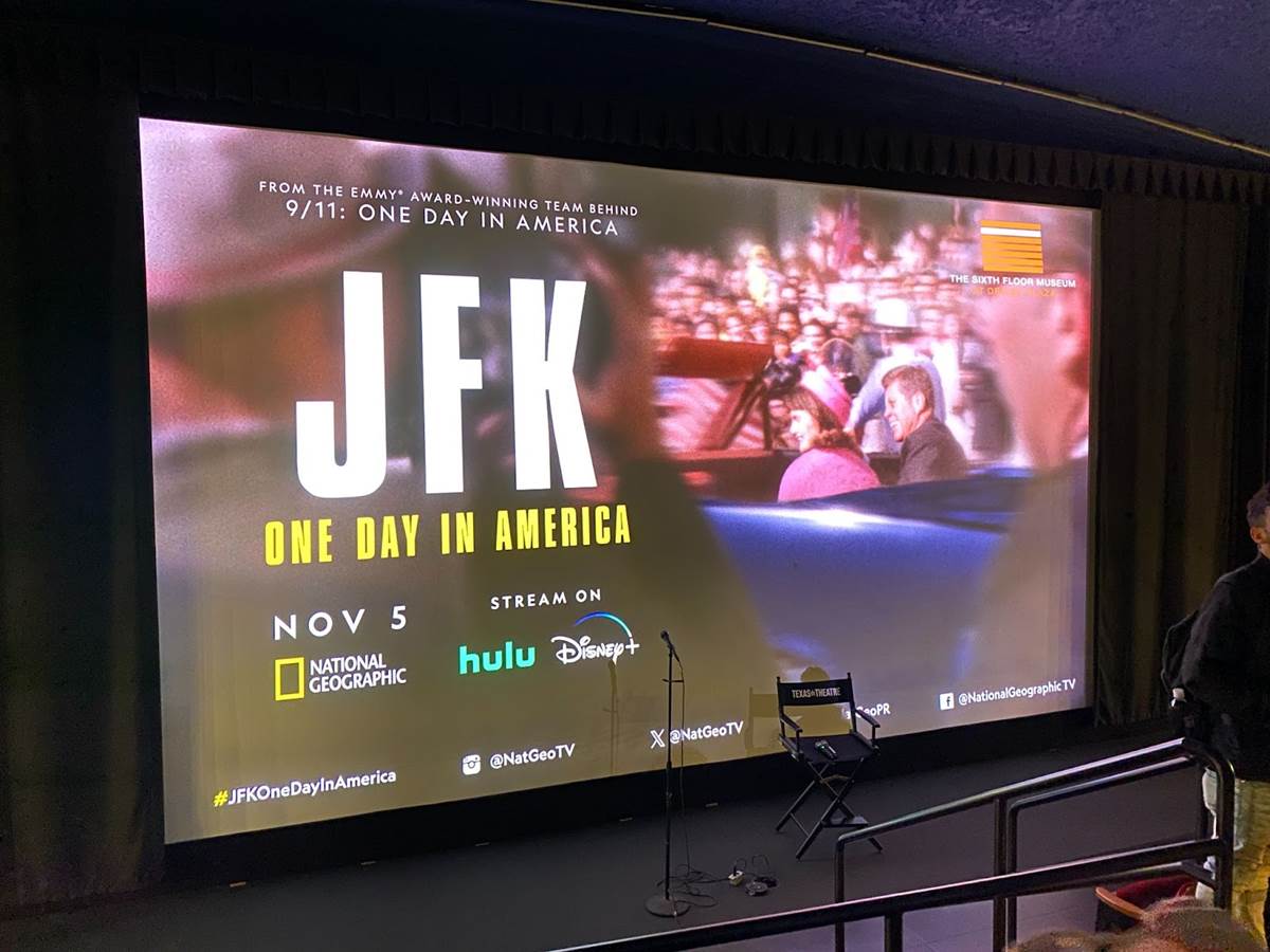The premiere screening of JFK: One Day In America’s first episode (of three) was held in the same building, though in the upstairs auditorium that once served as the Texas Theatre’s balcony. After the screening, a representative from the 6th Floor Museum moderated a Q&A session with the documentary’s producers alongside Peggy Simpson. You can watch that discussion in the embedded YouTube video below.