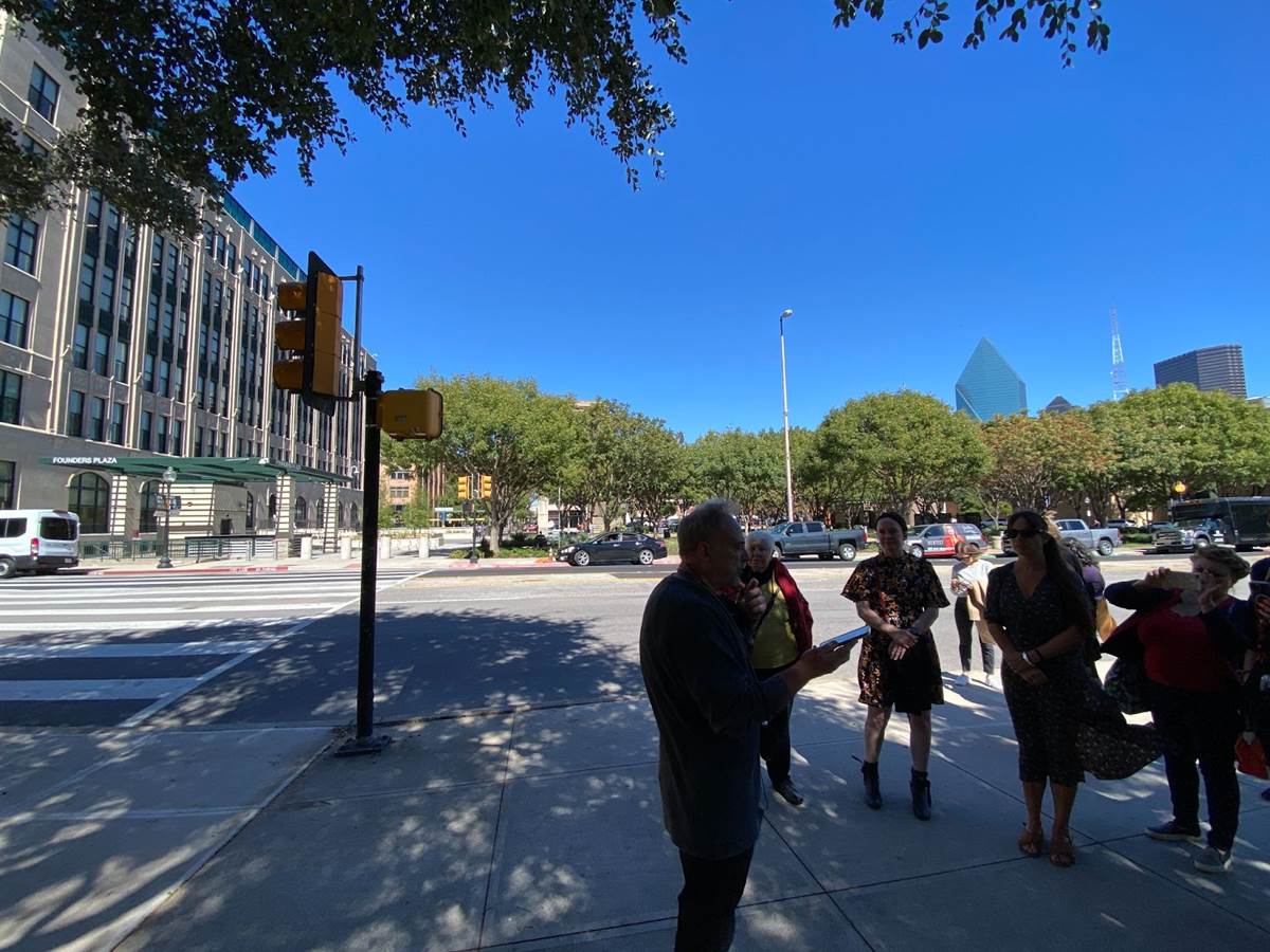 Next we walked around the corner, led by an excellent local tour guide, to Dealey Plaza, site of the horrific events of that early afternoon. The statue in the plaza predates the Kennedy assassination and in fact depicts George Dealey, a Texas businessman and publisher of The Dallas Morning News. Our guide walked us up to the former Texas School Book Depository, which now houses the 6th Floor Museum and is where Lee Harvey Oswald was perched during the assassination.