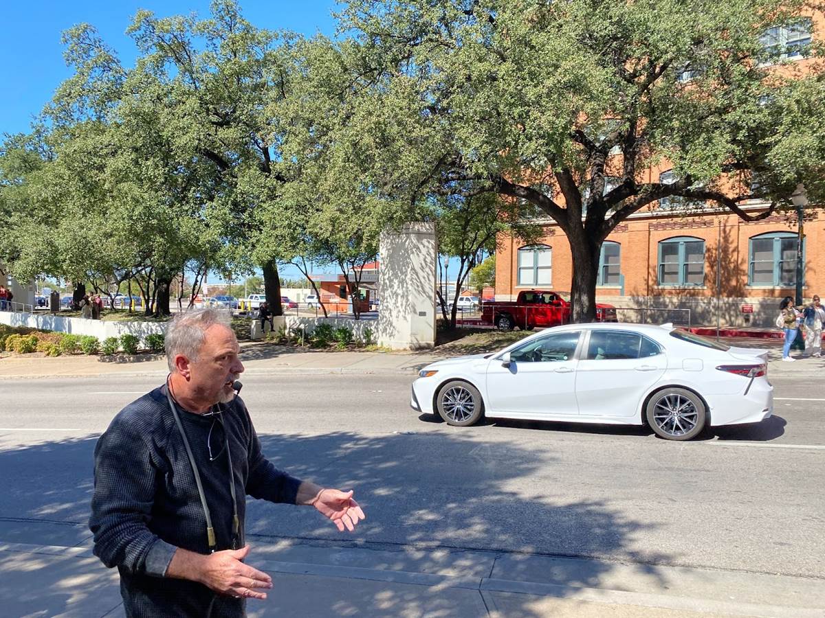 In the embedded Twitter (X) video below, I captured our guide walking us through the events of the assassination, right down to the path of each individual shot and where they would have struck the president.