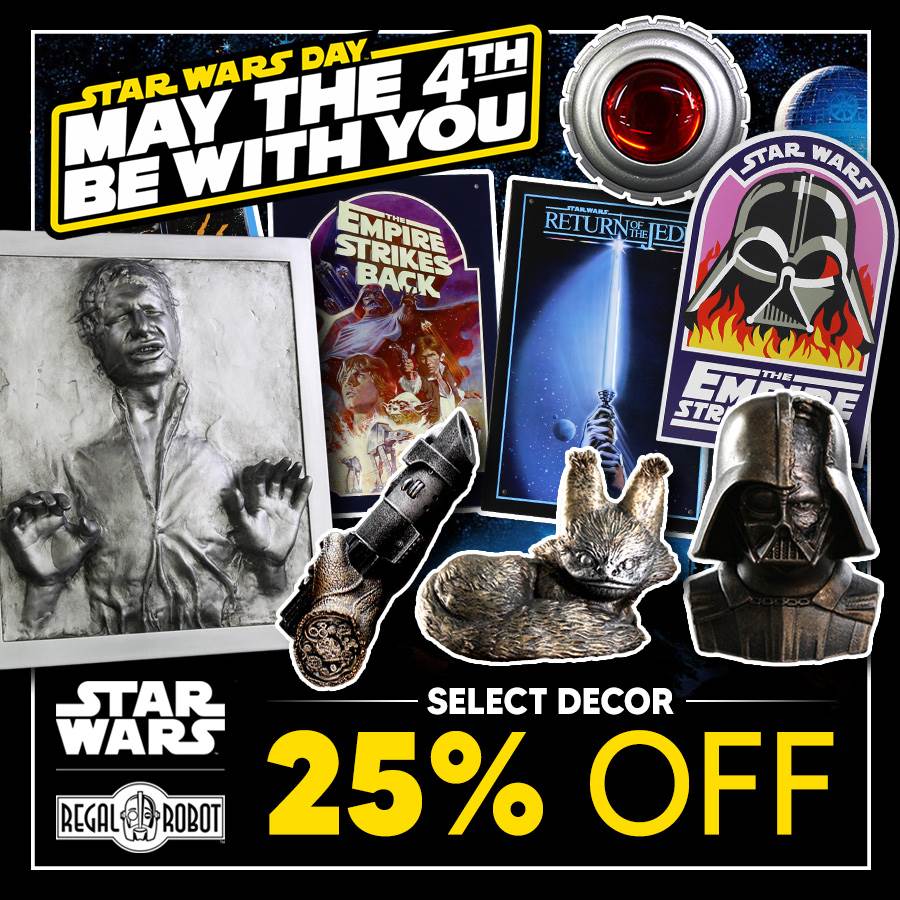 - Star Wars fans can celebrate May 4th with special savings at Regal Robot, where they can use coupon code MT42024 to save 25% on Regal Robot’s hand-painted Star Wars sculptural magnets and our unique 2D wall decor. Additional items in this sale include their Mudhorn Mini Skull, Rancor Corbel Wall Decor and Han Solo Carbonite Wall decor!