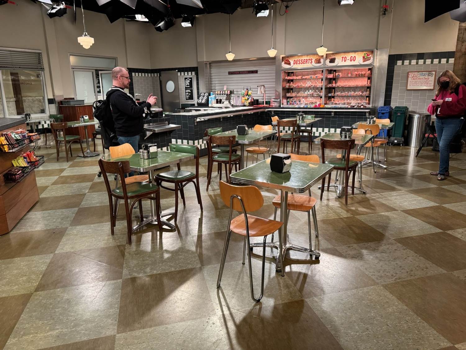 “They're exact re-creations from the original plans," executive producer and star Melissa Rauch shared about the set. “The walls have been updated a little bit because a government building wouldn't be that much updated over the course of 30 years. The paint colors change, but it's absolutely to scale from the original. Other than the bench because they made it just a little bit taller for me since I'm a different height than Harry. So that’s a little different. But we have the original chairs in the cafeteria from the original cafeteria set, which is very exciting. And because that was one of the tallest casts in television, my legs tend to dangle on these seats very much."