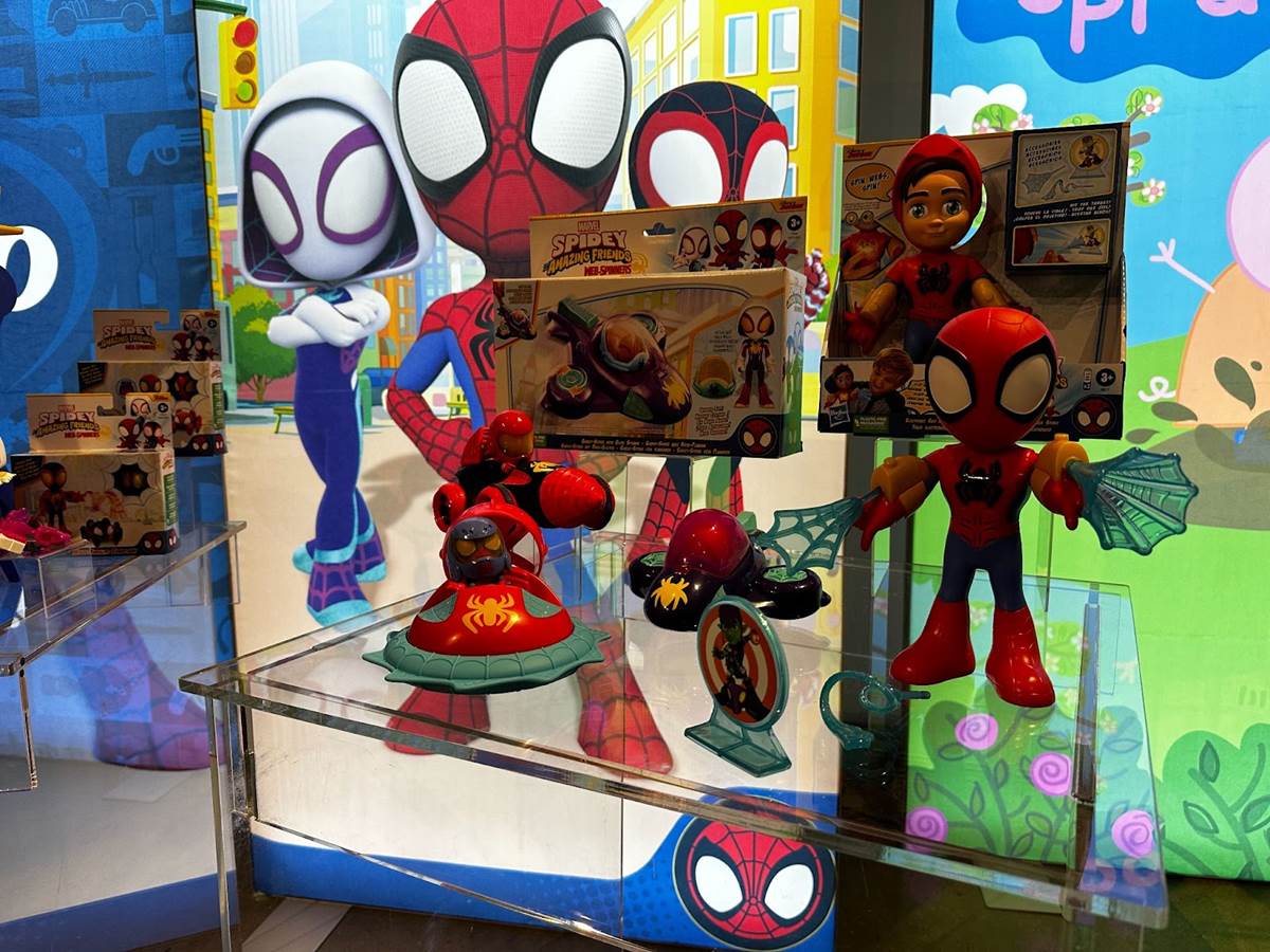 We begin our look at Marvel toys with the preschool line from Disney Junior’s Spidey and his Amazing Friends (ages 3 and up). These new toys tie into the upcoming 3rd season, and the centerpiece of the line is the new Web-Spinners Playset (MSRP $199.99). This is Team Spidey’s brand-new Web-Quarters from Season 3, built for them by Iron Man after the new baddie Zola destroyed the previous version.
