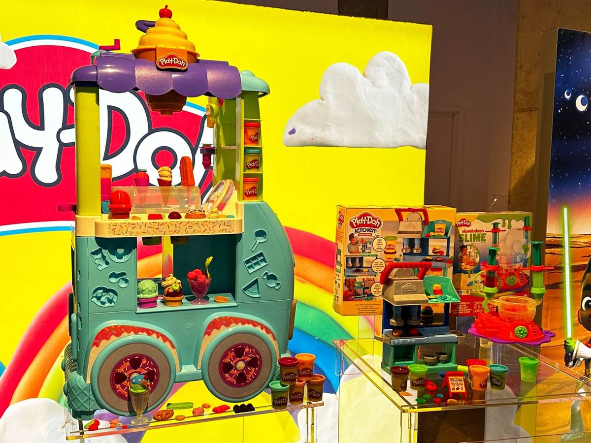 The Play-Doh Busy Chef’s Restaurant (Ages 3 and up, MSRP: $24.99) offers more pretend food play. Kids take over the kitchen at this establishment, using stampers to create pizza, burgers, pasta, and chicken. A lever allows them to speed up productivity by stamping two at a time. There’s even a menu board to add to the fun. Also on display was the Play-Doh Nickelodeon Slime Ultimate Bubble Lab (Ages 3 and up, MSRP: $24.99), which uses Nickelodeon Slime to create colorful bubbles without having to get gooey. A bubble wand lets them put on a show with their bubble slime creation.