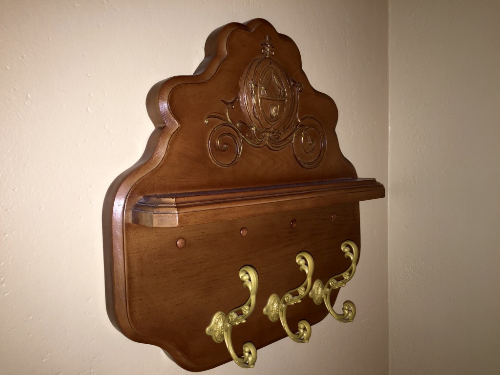 One of the most magical things about this room is the small touches you almost stumble upon such as the pumpkin carriage coat rack or the ceiling boarders with more of the "sidekicks" of some of the films.