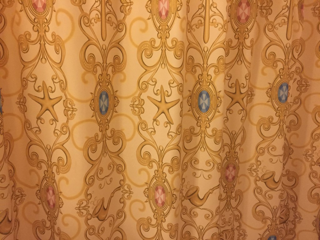 The Royal Water Closet is just as it sounds, but it wouldn't be a Disney room without a shower curtain themed to the most famous daughter of Triton, Ariel (if you look closely, you can also see a hidden Mickey).