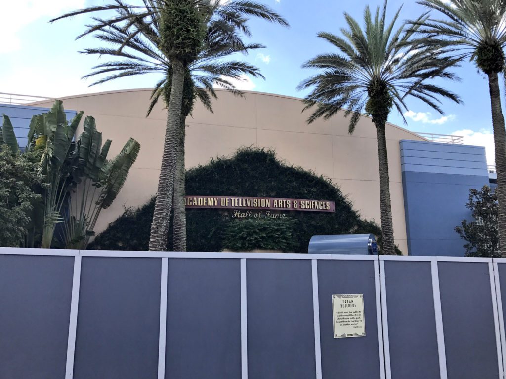 Yes that is right the Academy of Television Arts & Sciences Hall of Fame a staple of the park since 1993 is now walled up to make way for more food options.