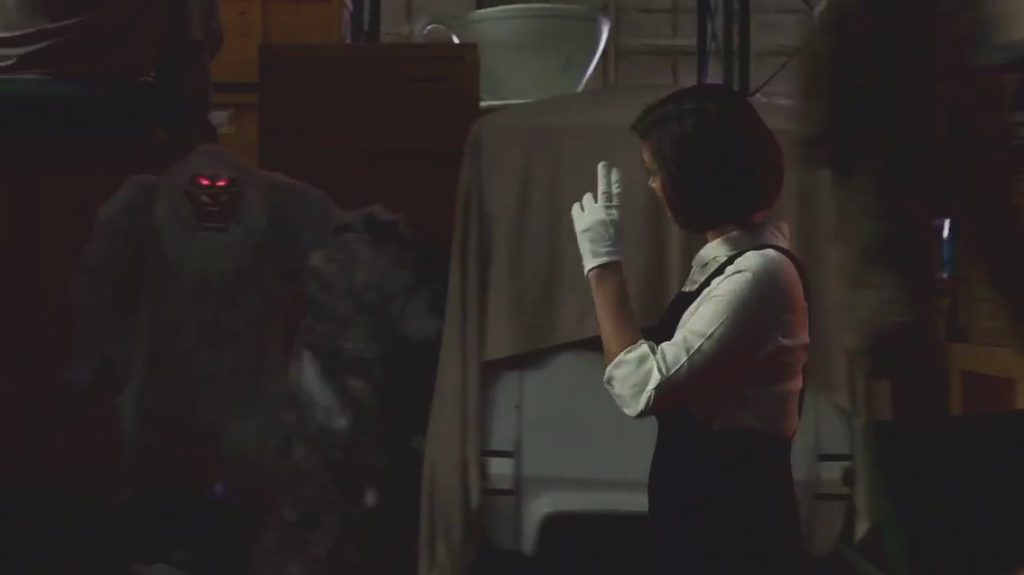 Just under halfway through the spot, the cast member arrives at her destination. A she glances down, a large and rare artifact can be seen behind her. This is the model Nautilus, once displayed as part of the 20,000 Leagues Under the Sea exhibit in Tomorrowland.