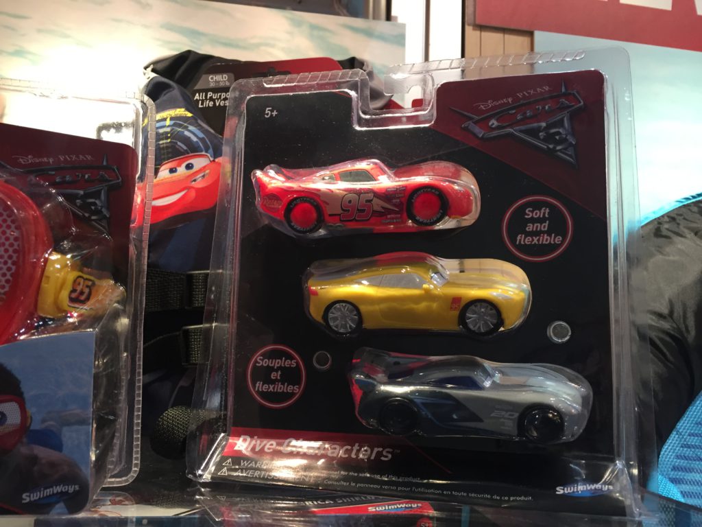 Marvel has joined the Swimways portfolio, with lots of products based on Spider-Man and the Avengers. In addition to floating toys in similar styles as the Finding Dory and Little Mermaid products, they also make full figure diving toys. My favorite items for kids were the Water Whirl Squirters, which come in Iron Man and Spider-Man figures. Putting the base in the pool, kids can blast water out of Iron Man's arc reactor or out of Spider-Man's wrists.Cars 3