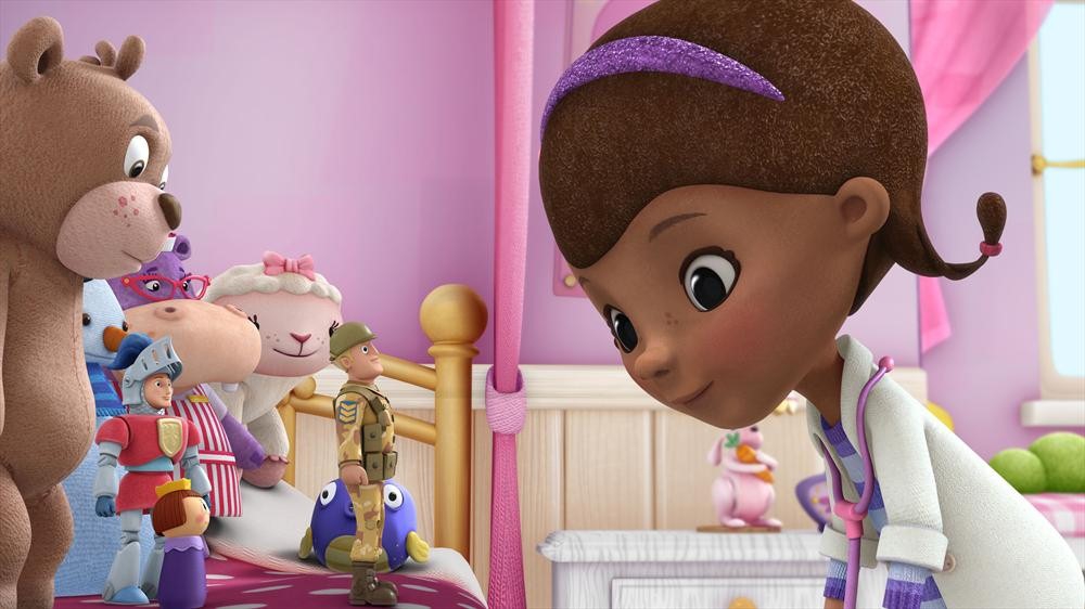 A special "Doc McStuffins" episode continues Disney's legacy of support for military families through a storyline that gently reflects common emotions young children face but find difficult to express when a parent or loved one is deployed. The episode of Disney Junior's acclaimed series will be presented on Veterans Day, TUESDAY, NOVEMBER 11 (9:30 a.m., ET/PT) on Disney Channel. As part of the Joining Forces initiative, First Lady Michelle Obama will host military families for a private screening at The White House on Monday, November 10.