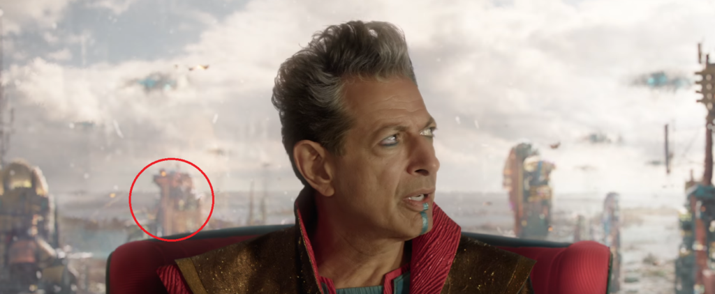 Behind Jeff Goldblum, who portrays the Grandmaster, there appears to be a facility that has a striking connection to The Collector's fortress that is being built in Anaheim. The connection is unclear, but in the comics both the Grandmaster and the Collector are members of the "Elders of the Universe." Goldblum and Benicio del Toro, who played the collector, also seem to have similar fashion sense which may imply that there is a connection between the characters.
