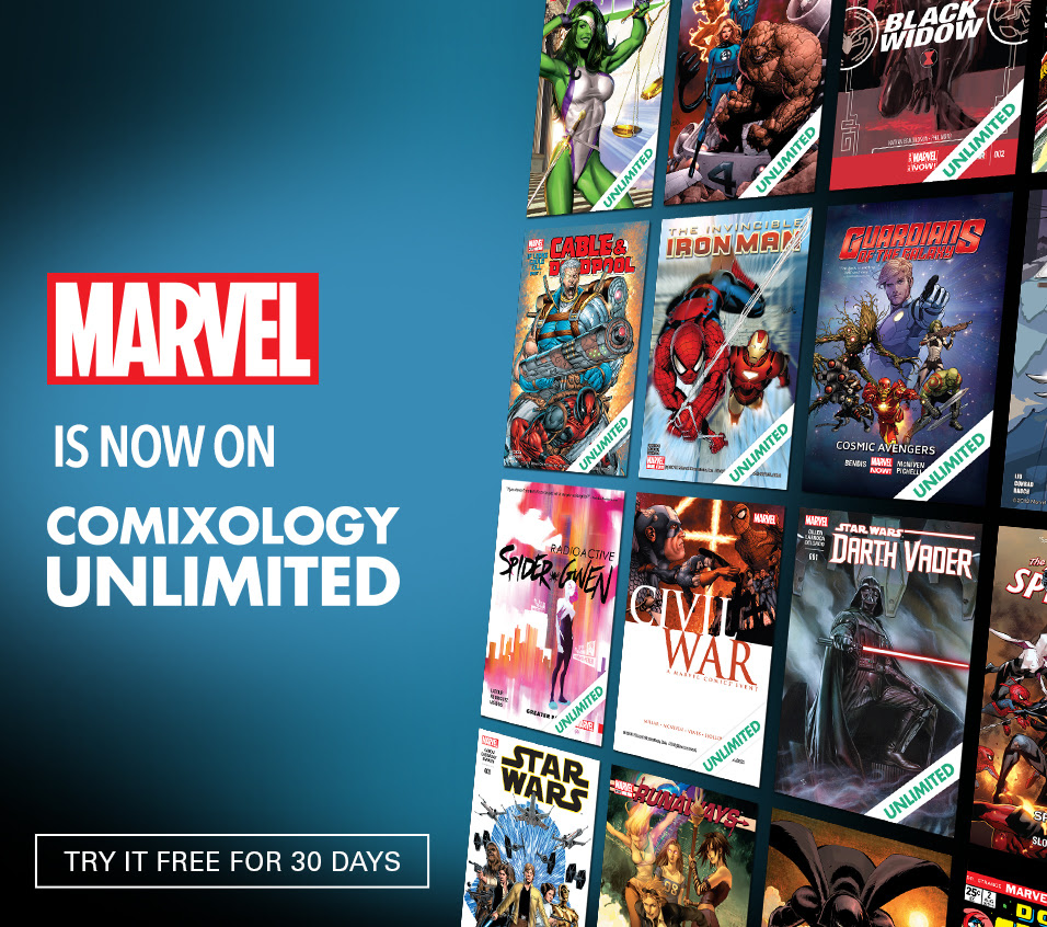 “We are thrilled to have part of Marvel’s vast library of Super Heroes join comiXology Unlimited, Kindle Unlimited, and Prime Reading,” said comiXology CEO and Co-Founder David Steinberger. “With the addition of Marvel Comics this is a great opportunity to discover and explore the best that comics have to offer. And for those just starting out reading Marvel Comics, Kindle Unlimited and Prime Reading are great places to begin.”