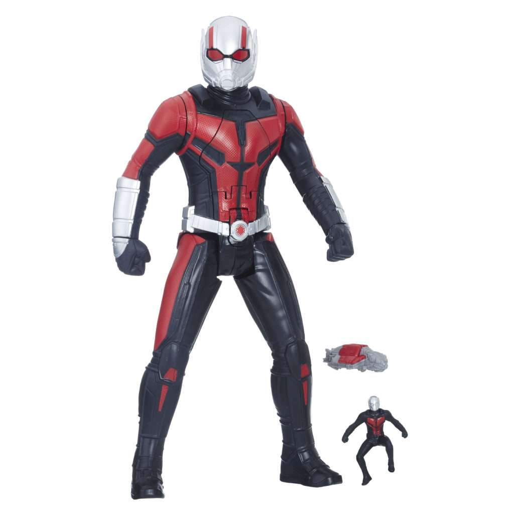 Imagine Scott Lang shrinking and launching through the air with this 12-inch scale Shrink & Strike Ant-Man Figure, featuring a hidden launcher that can send the included miniature Ant-Man figure or Quantum ship accessory flying. Load the included accessory into the port, then pull the arm to send it launching.