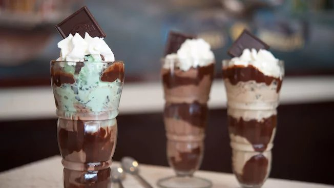 - Beyond the chocolate samples, guests can indulge their senses with a wide selection of soda fountain favorites such as a Banana Split or the rich Intense Dark Sundaes, milkshakes, drinking chocolate and more.