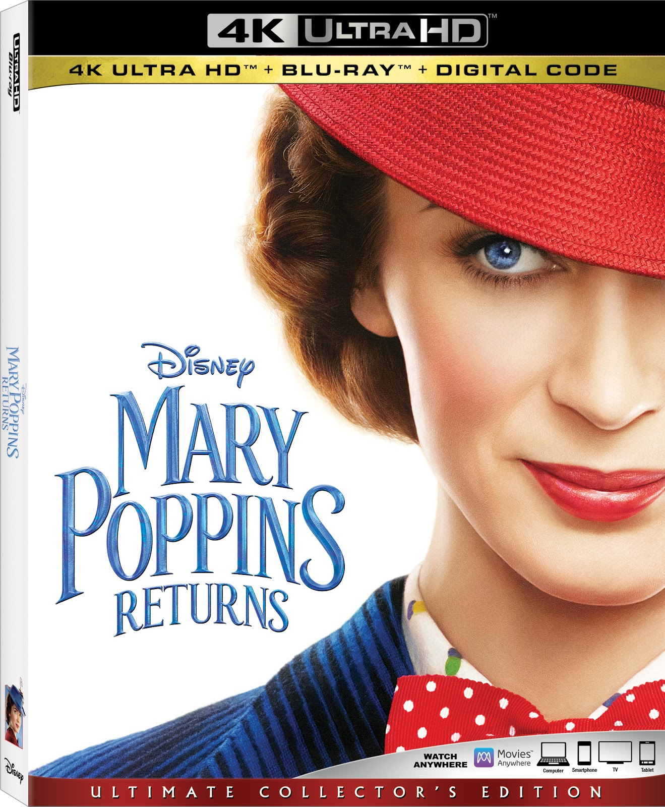 - Mary Poppins Returns will be available on Digital 4K Ultra HD/HD and Movies Anywhere March 12 and on 4K Ultra HD, Blu-ray and DVD March 19.