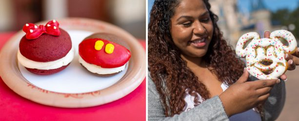 - Mickey and Minnie Whoopie Pies – Red velvet whoopie pies come filled with cream cheese icing and are topped with chocolate decorations.