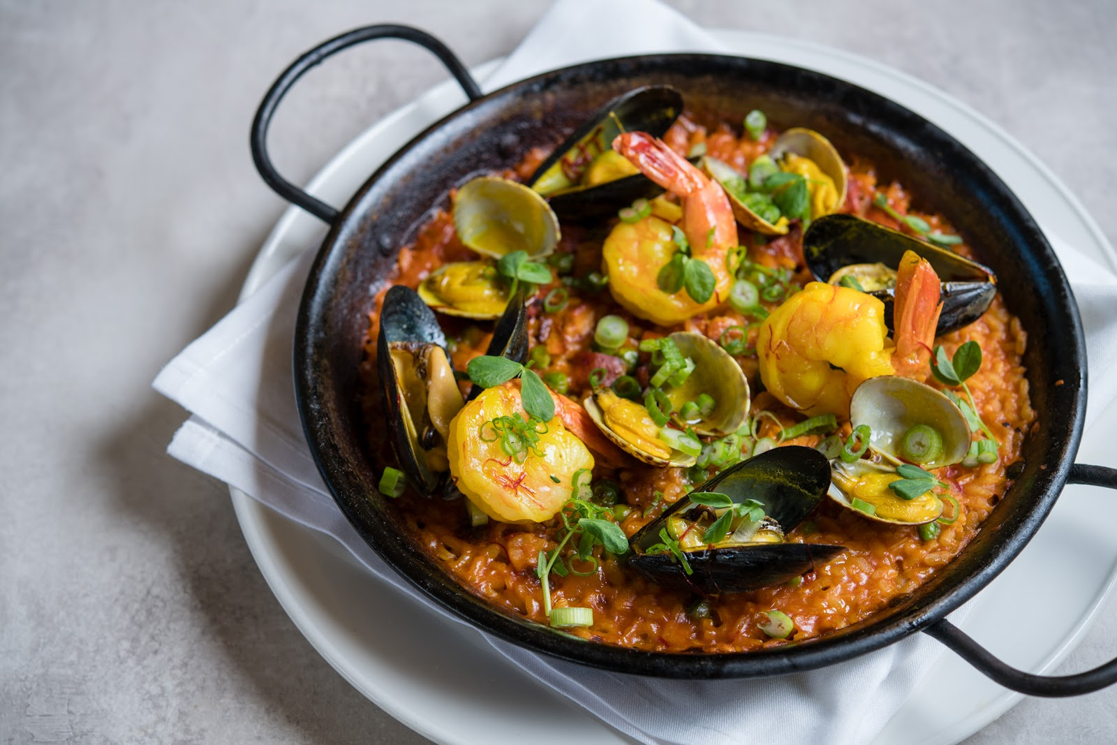 - Chicken Paella – roasted chicken, chorizo de bilbao, saffron bomba rice, eas, and saffron aioli