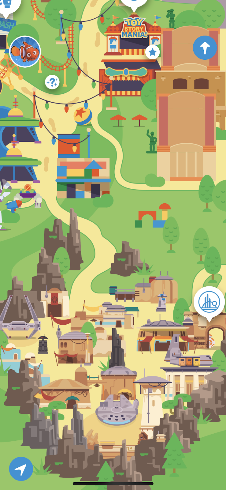 - Star Wars: Galaxy’s Edge can be seen on the ‘Select a Park’ screen after in the Disneyland Park preview as well as in the actual Disneyland Park map, where you can see much more detail.