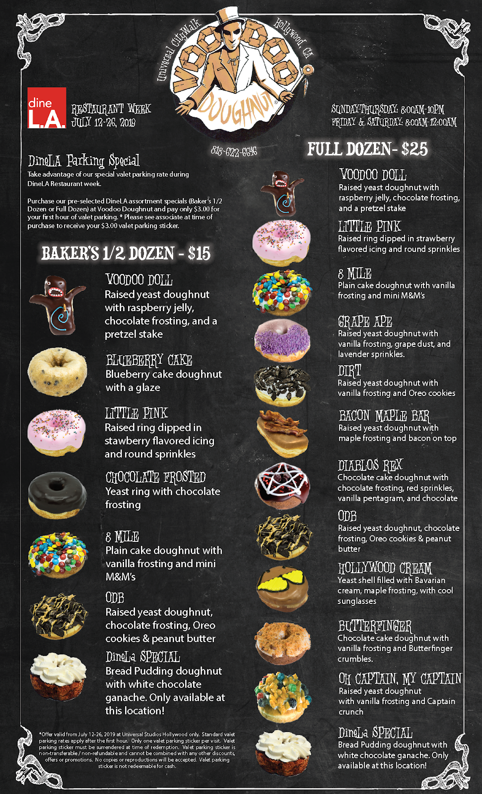- Voodoo Doughnut will offer a Baker’s Half Dozen and Full Dozen specials in addition to a dineL.A. special bread pudding doughnut only offered at the CityWalk location.