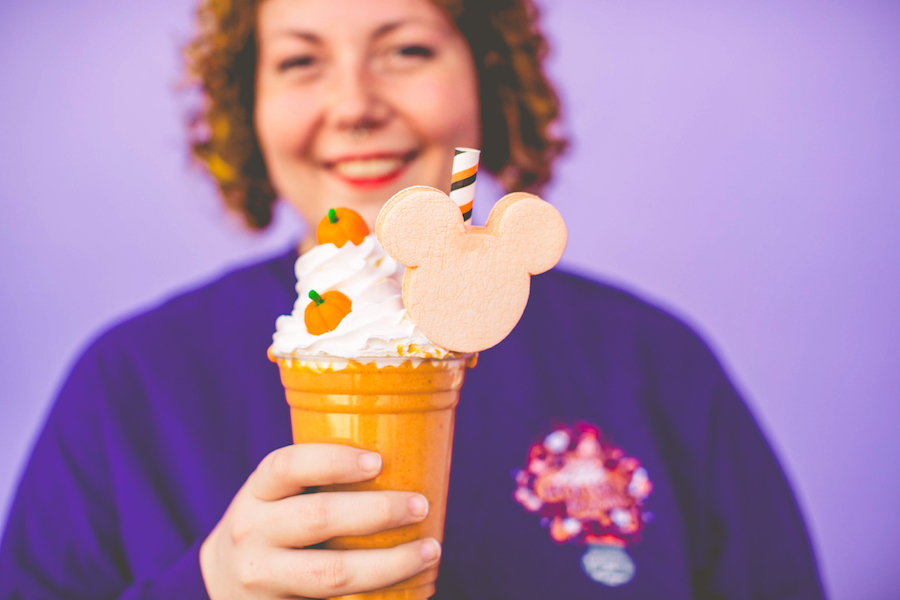 - Gluten-friendly pumpkin spice milkshake topped with candy pumpkins and a Mickey marshmallow straw