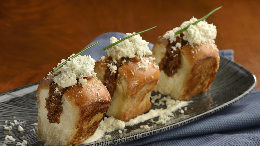 - You’ll also find Mini Smoked Short Rib Sliders with glacier blue cheese and onion marmalade on brioche buns.
