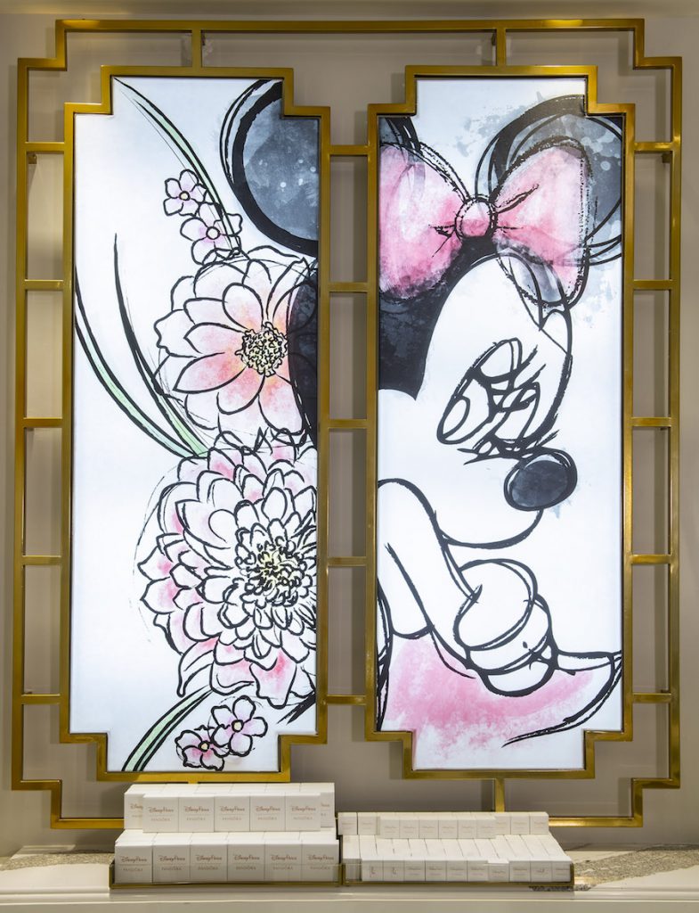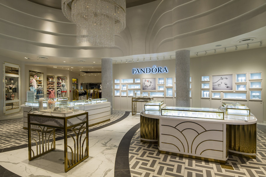 - A glamorous chandelier and Minnie Mouse-inspired decor welcome guests to this newly designed shop which will offer the latest in Disney fashion as well as sparkling Pandora jewelry.