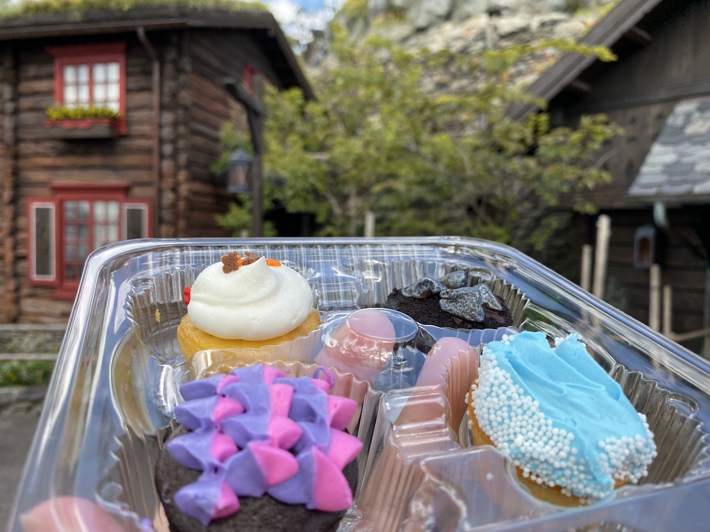 - Hidden Truth Cupcake (Good’s Food to Go at Disney’s Old Key West Resort and The Artist’s Palette at Disney’s Saratoga Springs Resort & Spa) – chocolate cupcake with blackberry ganache, blackberry buttercream, white chocolate garnish, and blue and white sprinkles