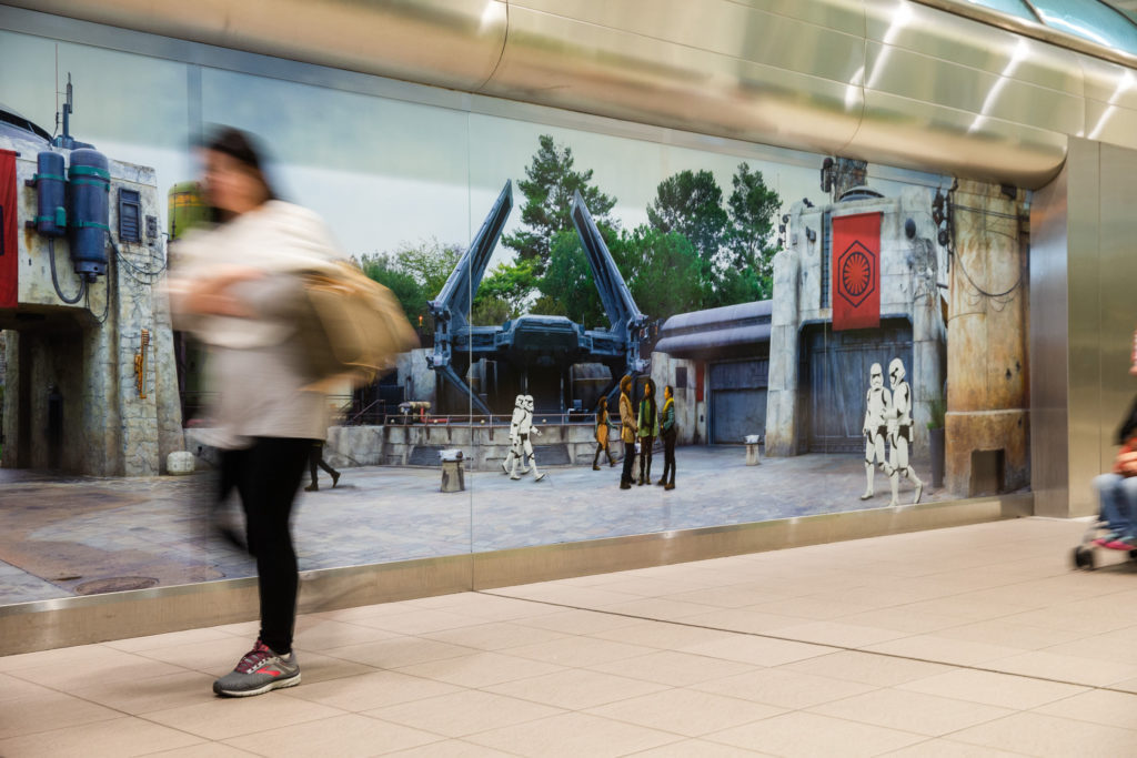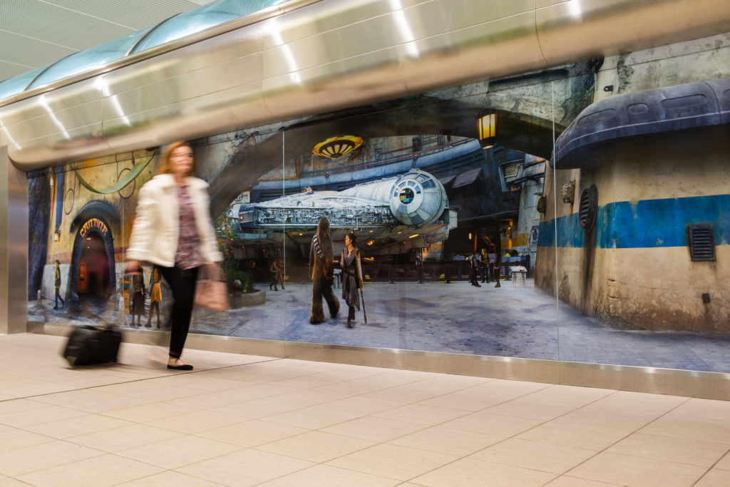 - When the airport’s second Magic of Disney store, in the Main Terminal East Hall, reopens November 22, 2019, it will feature a 36-foot-long video screen on an exterior wall showing scenes from Star Wars: Galaxy’s Edge. This will be another ideal photo spot, giving visitors an enticing glimpse of the new land.
