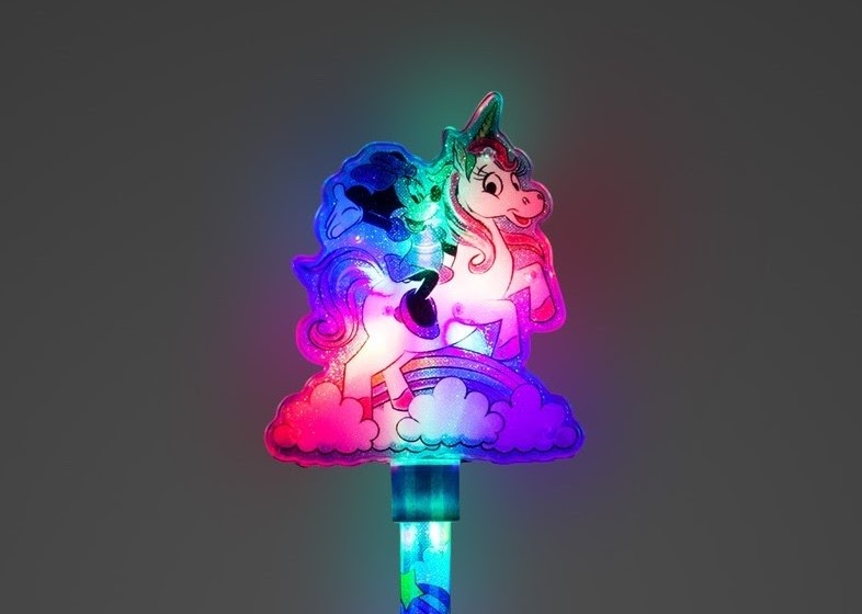- Little Minnie fans will light-up when they see the Minnie Mouse wand in action. Mickey’s leading lady rides a unicorn on top and the button on the handle can illuminate the entire wand in three different flashing modes.