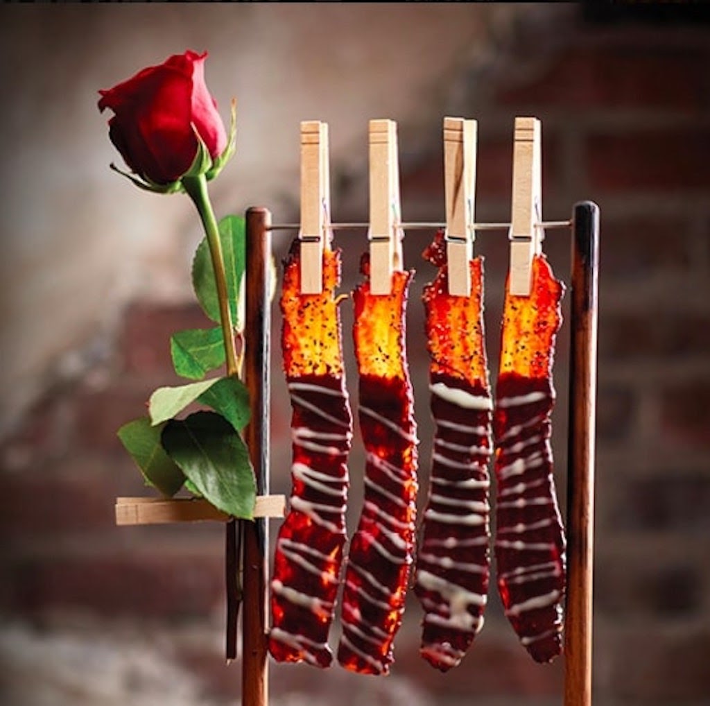 - DB “Clothesline Chocolate Covered Candied Bacon” – Maple, black pepper, fruit mostarda, dipped in chocolate.