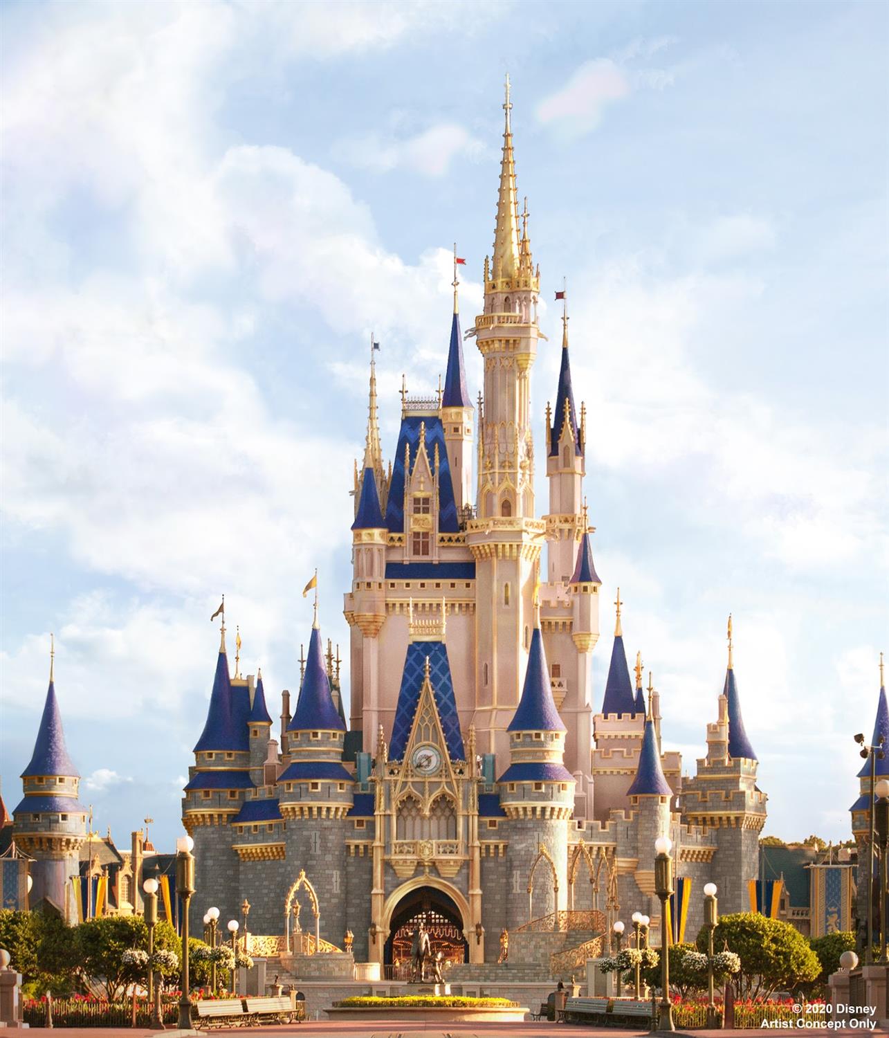 - From the image shared by Walt Disney World, the future state of the castle appears to have more golden enhancements and darker blue turrets, but retains the look and simplicity that has been a hallmark of the Walt Disney World Resort since it opened in 1971.