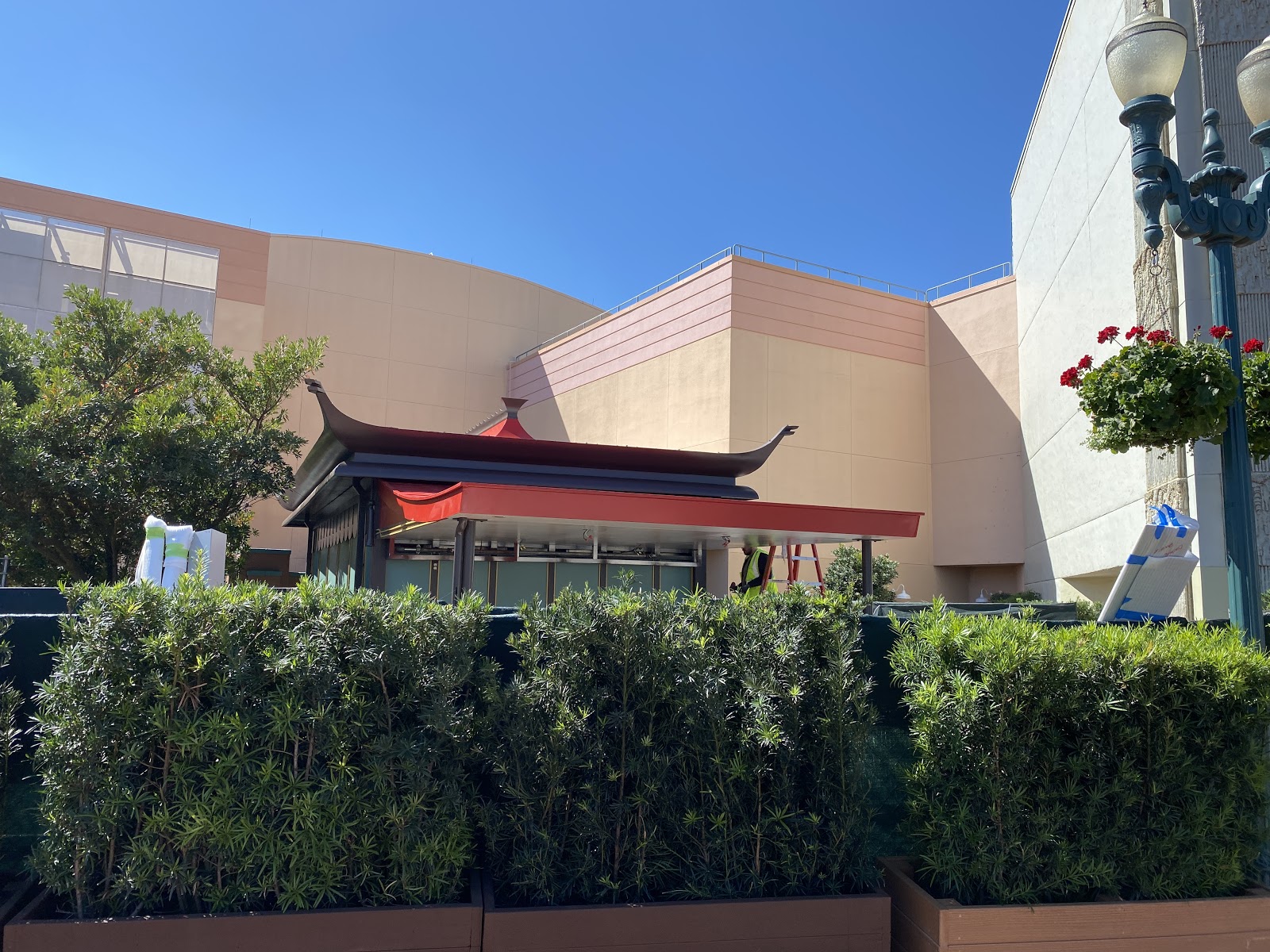 In addition to the work on the theater, a merchandise cart is now visible just between Mickey & Minnie's Runaway Railway and the Mickey Shorts Theater.