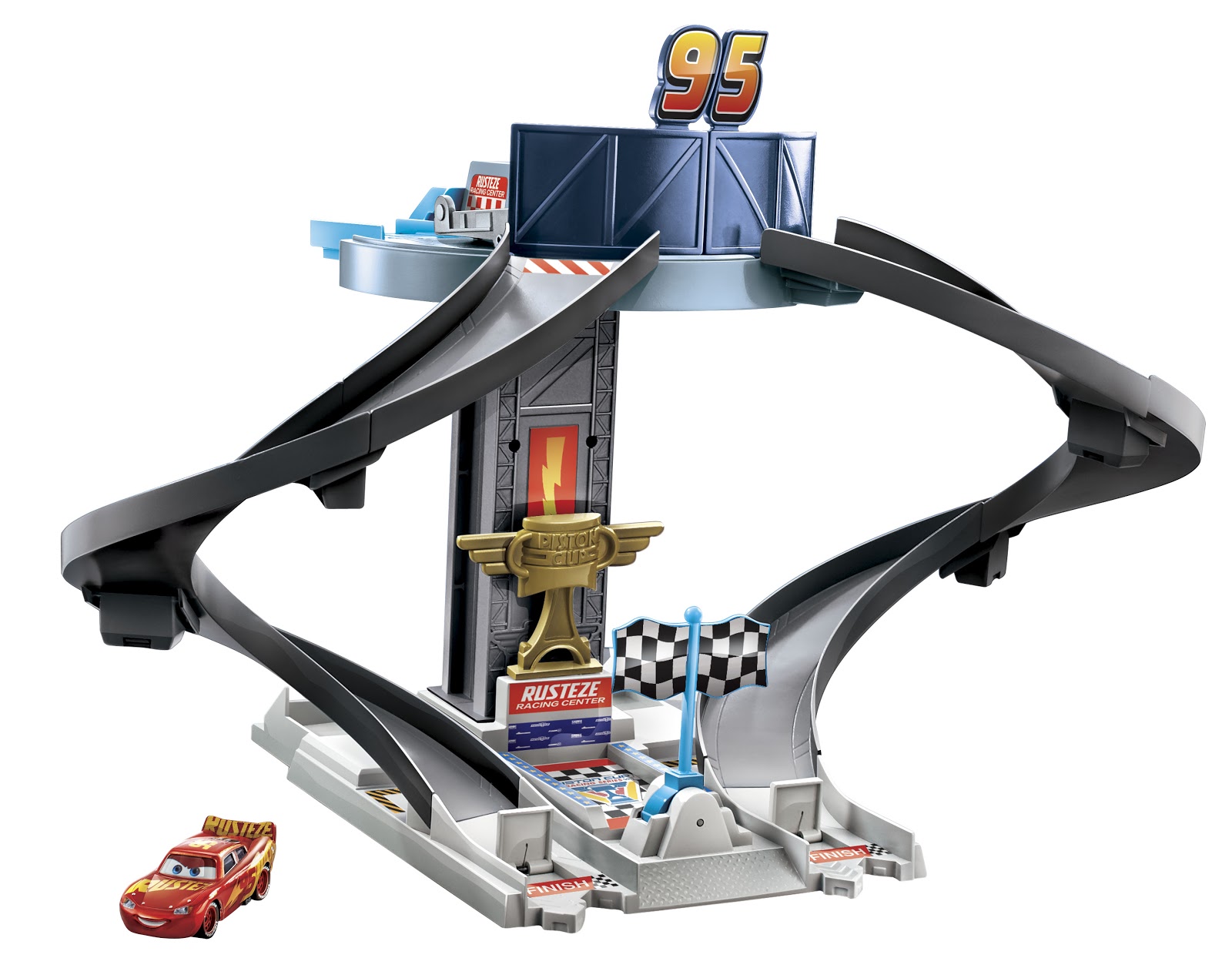 - Disney and Pixar's Cars fans get sky-high thrills with Rust-Eze Racing Tower! Like the movie's famed training center, this playset features numerous prep areas plus a bonus racing track.