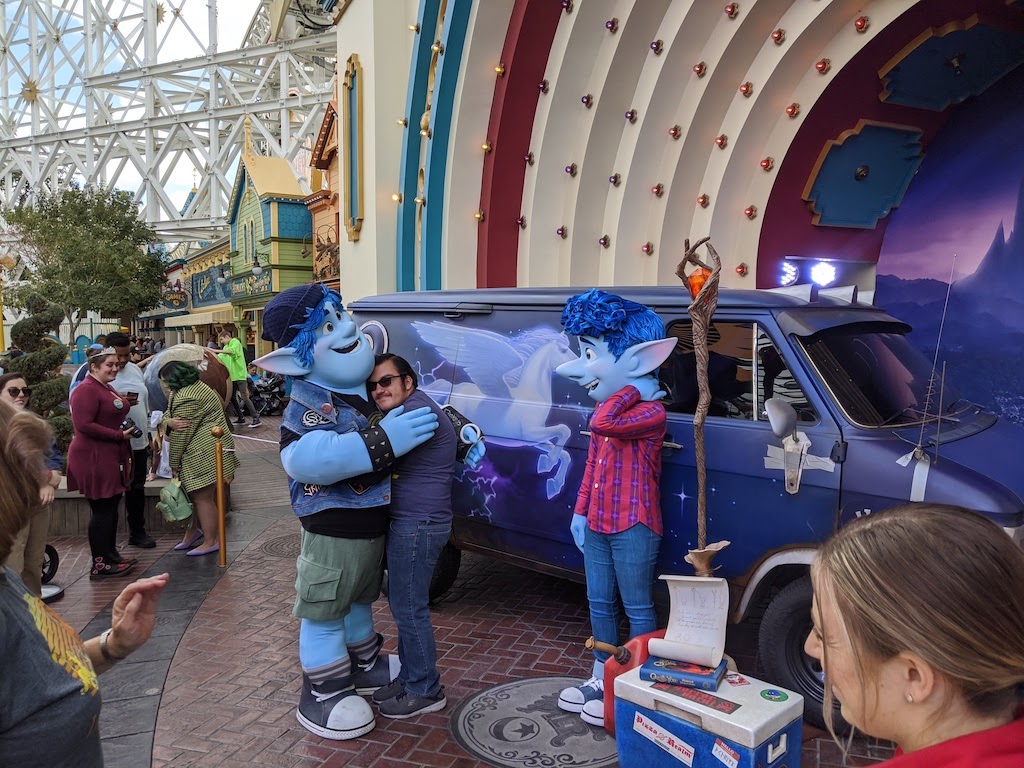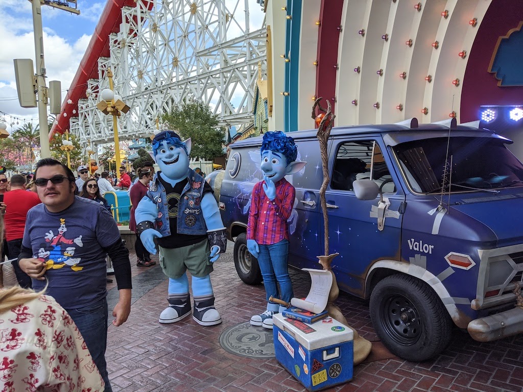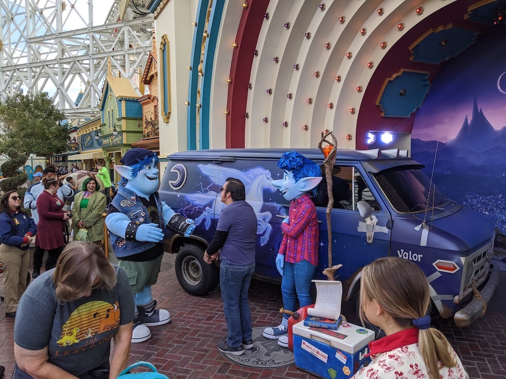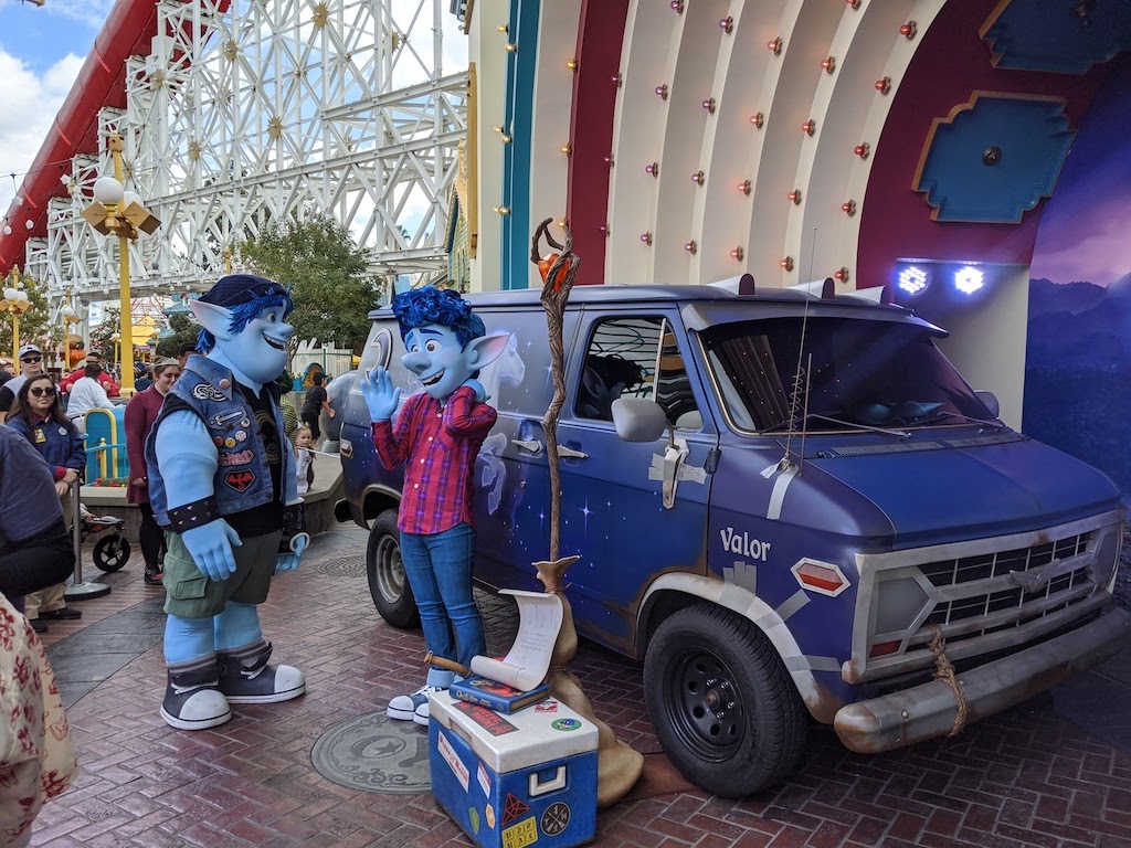 It’s quite common for guests to make Disneyland Resort a stop on their road trip, or even as their final destination, but no one has ever been able to park their van right on Pixar Pier at Disney California Adventure. Until now. This week, Ian and Barley Lightfoot, the stars of Pixar’s Onward have set up meet and greet right on the pier.
