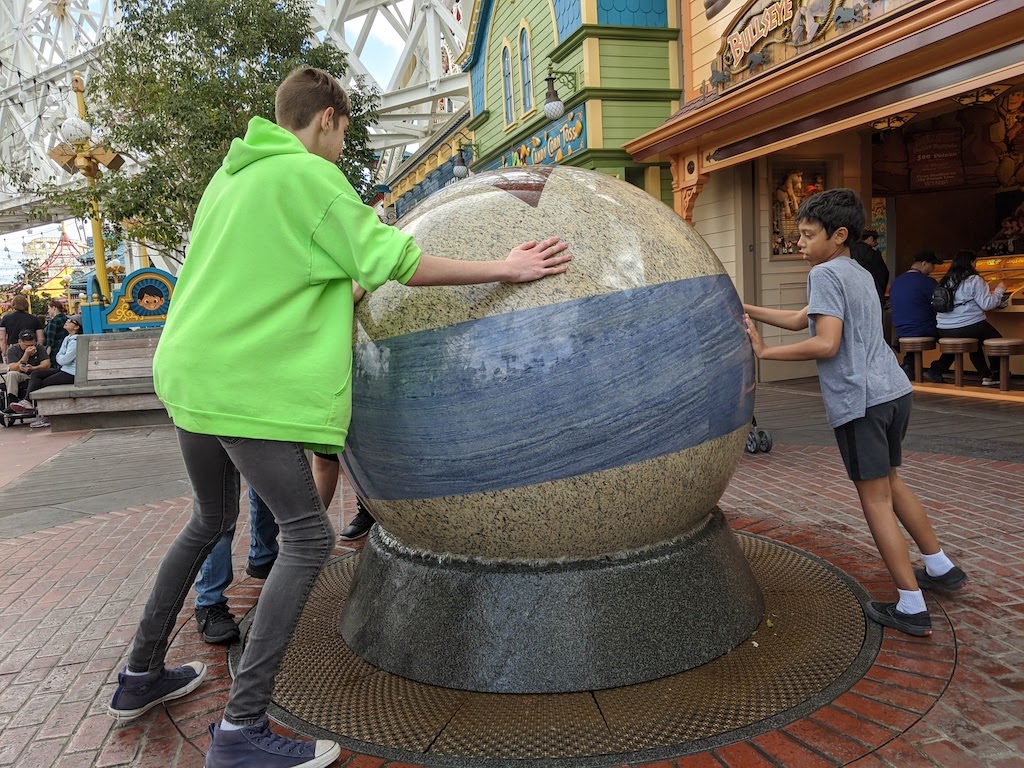 Just for fun, if you’ve never been to Pixar Pier, there’s a giant marble Pixar ball that guests can (attempt to) spin around. It’s a great way to pass the time and have kids focus their energy on their strength!