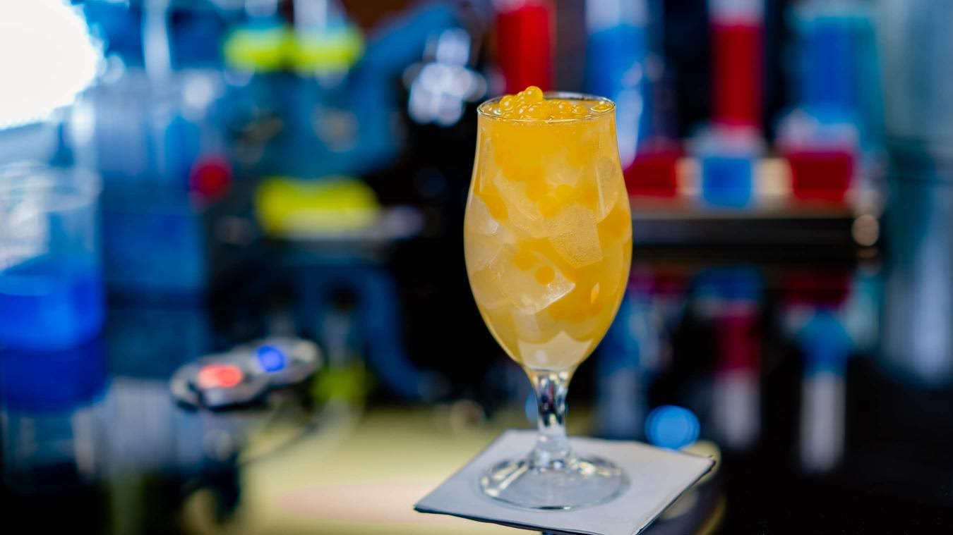 - X-Periment - Patron Silver Tequila, Lime Juice, Habanero, and Mango Syrup, garnished with Mango flavored Popping Pearls.