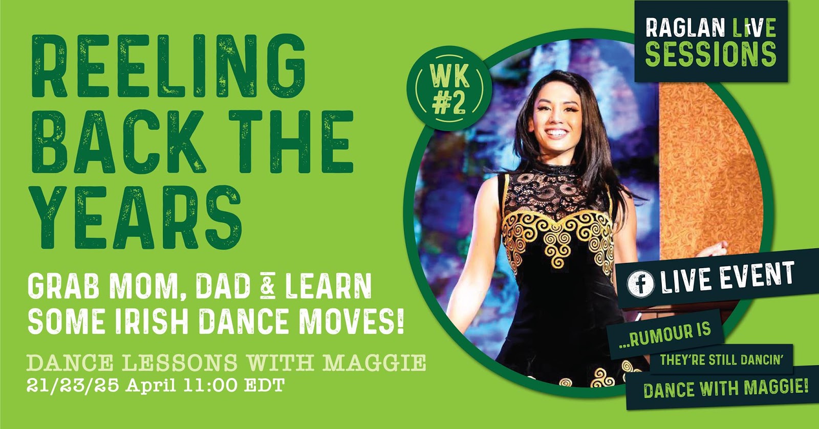- Fans can tune into “Reeling Back the Years” live dance lessons and weekend Irish music concerts on Facebook Live from April 21 to 26 this week.
