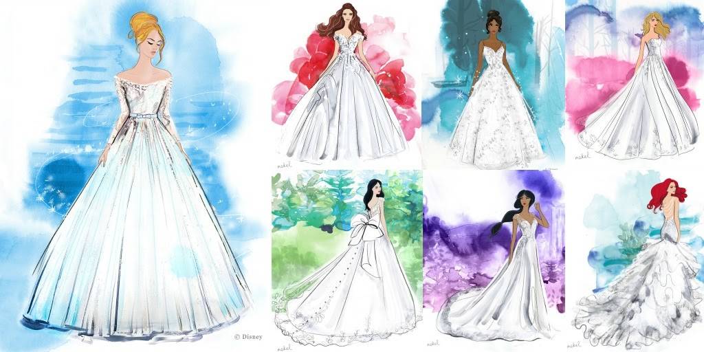 - The Disney Fairy Tale Weddings Collection consists of nine gowns inspired by the stories and styles of favorite Disney Princess characters, featuring gorgeous embroidered detailing, detachable accessories, soft crepe and hints of sparkle throughout.