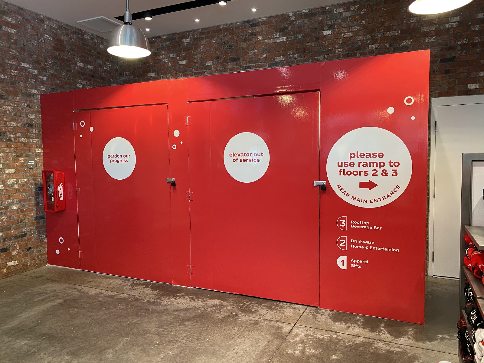 Reminders have been added throughout the store about their policies, which include wearing a face covering, maintaining social distance, and washing hands regularly. Hand sanitizer is available throughout the multi-level shopping experience.