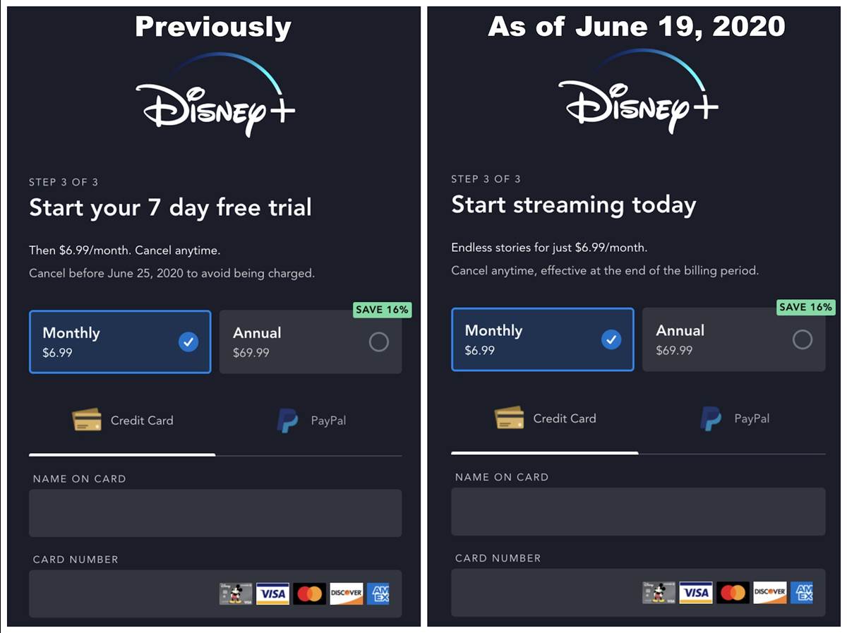 - Just over seven months after its debut and with more than 50 million paid subscribers worldwide, Disney+ has made a bold move and is no longer offering a 7-day free trial of their service.