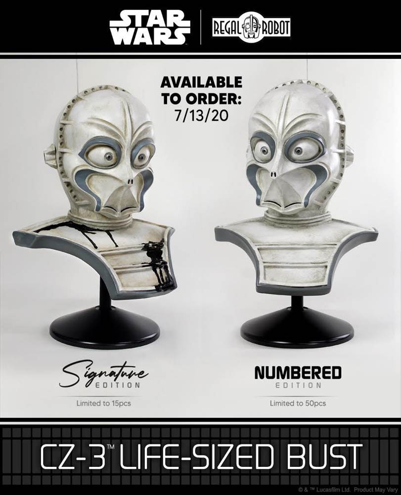 - The themed furniture and collectibles company Regal Robot has announced a new 1:1 scale bust of the relatively obscure droid CZ-3, as seen in the original Star Wars film from 1977.