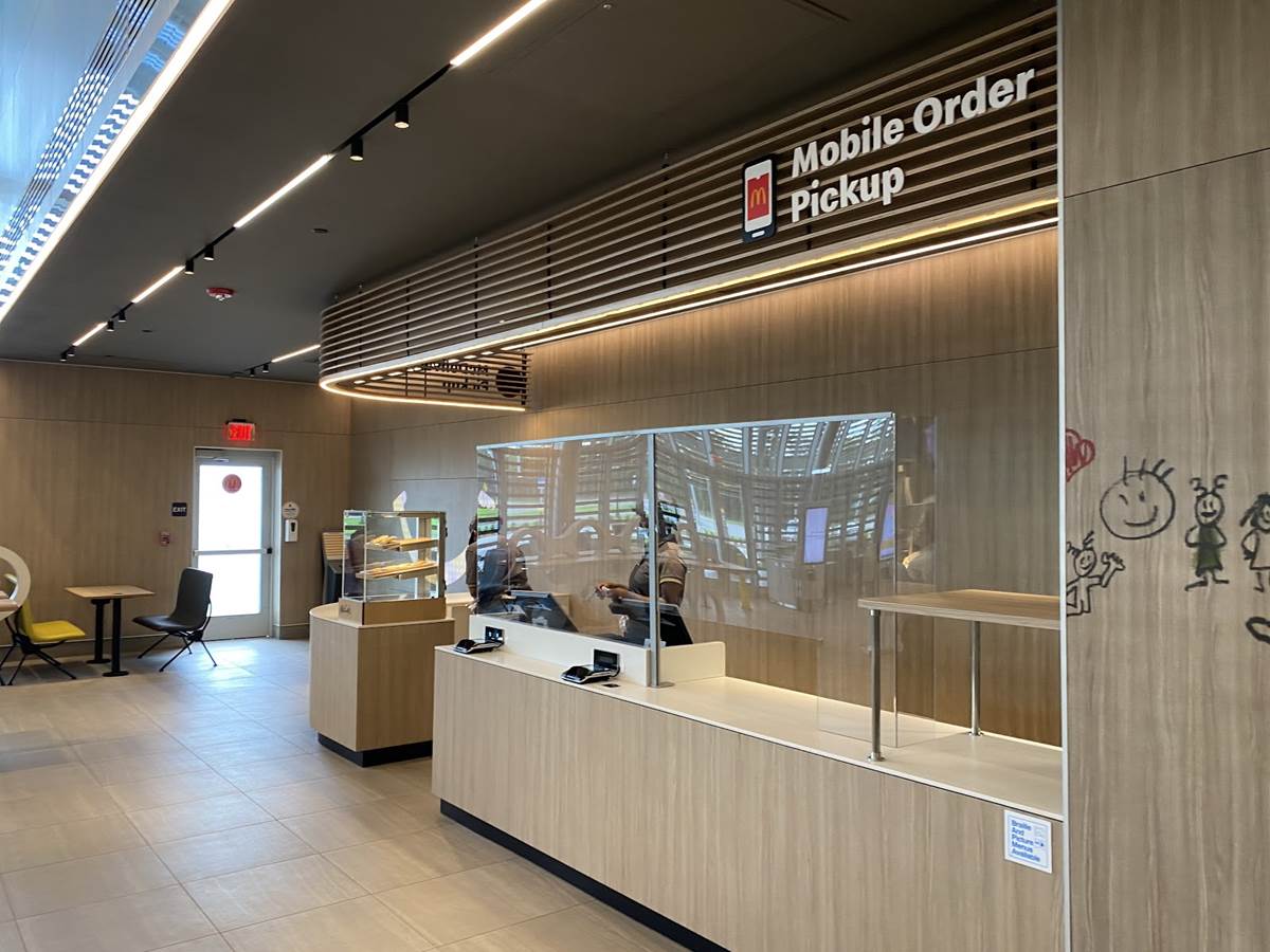 Guests using mobile order to go can pick their order up from a counter dedicated solely to mobile orders.