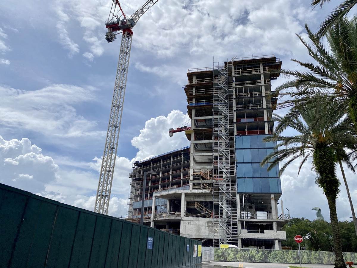 Today we got a look at the construction progress on The Cove, a third tower being added to the Walt Disney World Swan and Dolphin. The project was first announced in 2018 with an expected opening in 2020, although no opening date has been announced.