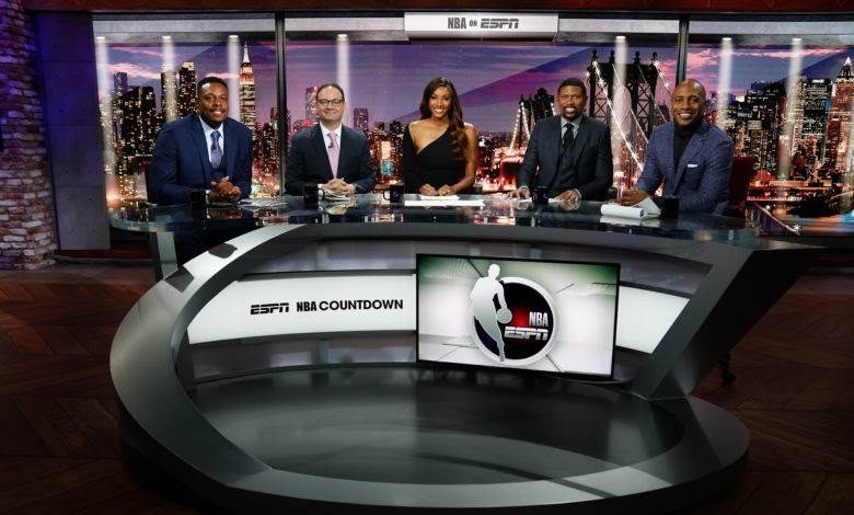 - NBA Countdown presented by Mountain Dew: NBA Restart, will be led by host Maria Taylor and featuring analysts Paul Pierce, Jalen Rose, Jay Williams and ESPN Senior NBA Insider Adrian Wojnarowski.