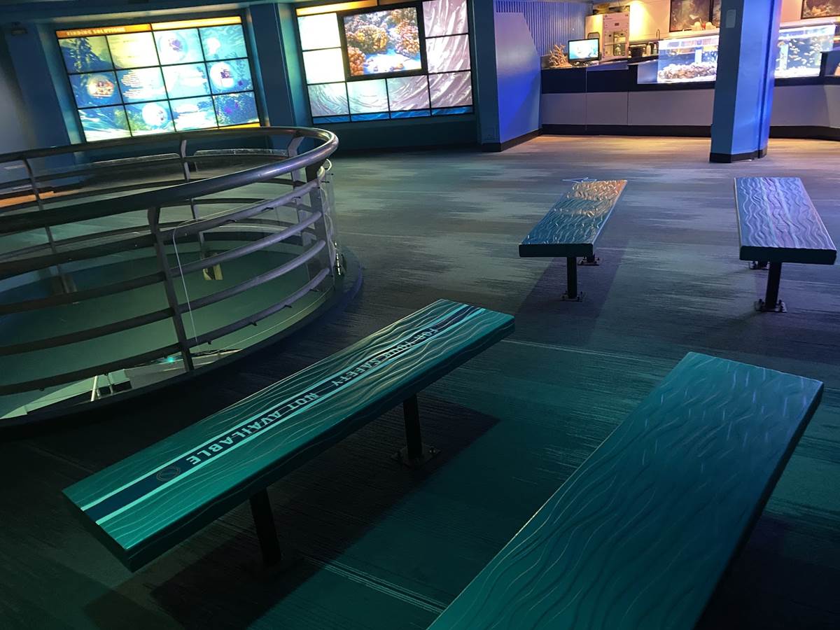 Seating areas with permanently fixed benches have designated some benches as unavailable to keep parties relaxing on a bence six-feet apart.