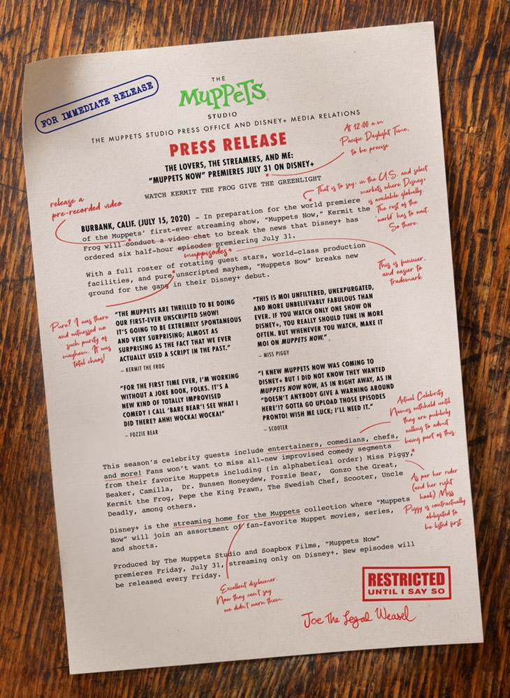 - Naturally, it wouldn’t be a Muppets meeting without a little bit of chaos! Joe from Legal joins the call to make sure everyone knows what’s up and to insist on a few things, like calling episodes “muppisodes” because it enhances the IP. Take a look: