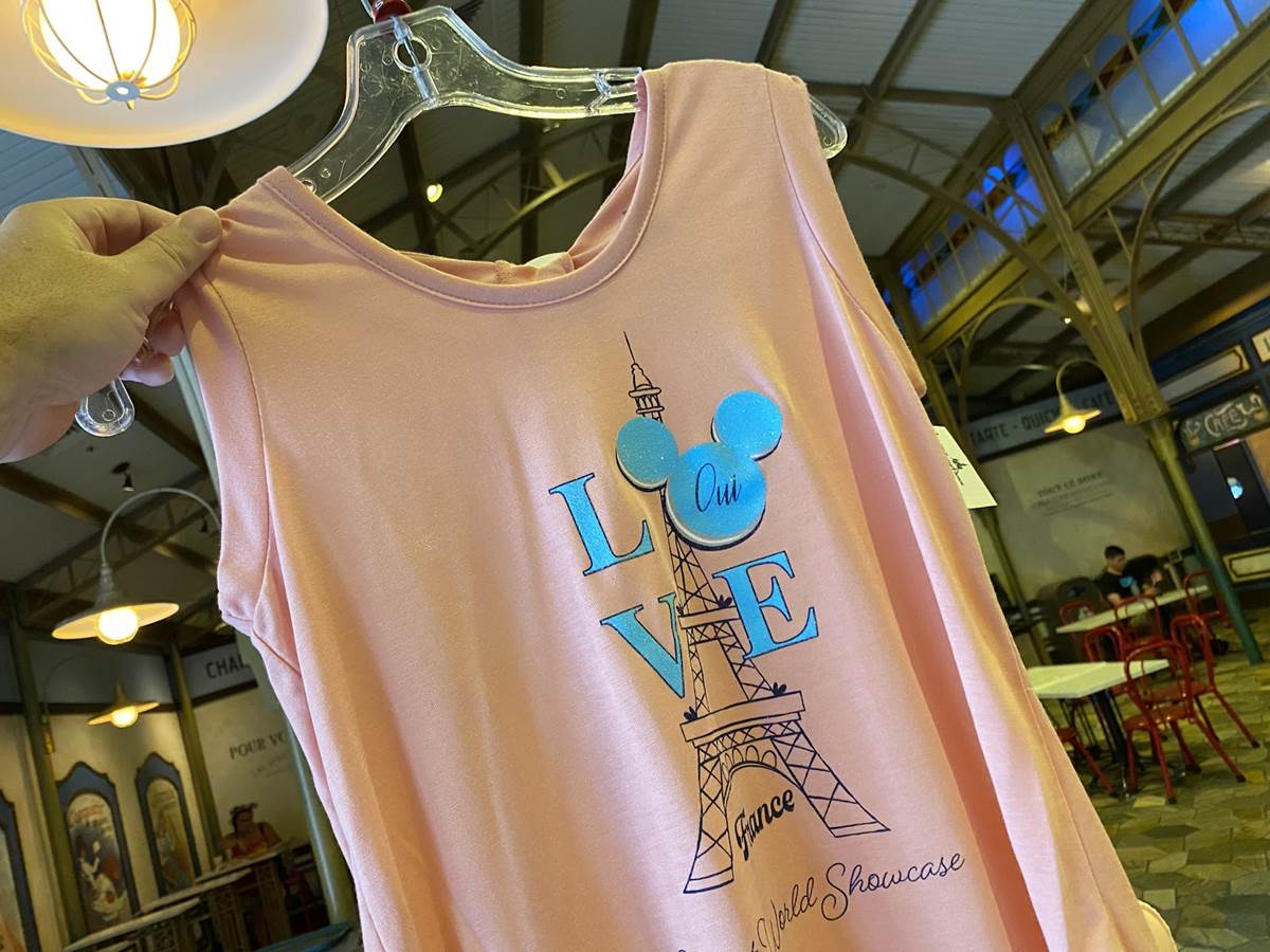 Not crazy about Minnie Mouse? Disney’s got you covered with this Eiffel Tower “Love” shirt where the “O” is Mickey shaped and says “Oui” in the middle. This shirt retails for $34.99.