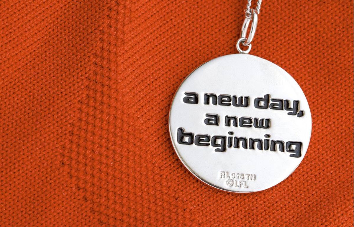 - Eckstein: “This is one of my favorite Ahsoka quotes from Star Wars Rebels. It’s a reminder that each new day brings hope and a fresh start. This has become one of my personal mantras. I wanted to put this quote on the back of the necklace pendant to remind anyone who wears it that every new day is a gift!”