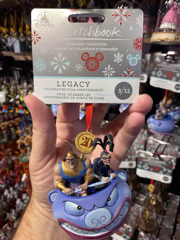 Just behind it, an ornament celebrating the 20th anniversary of The Emperor’s New Groove featuring Yzma and Kronk after they pull the “right” lever.