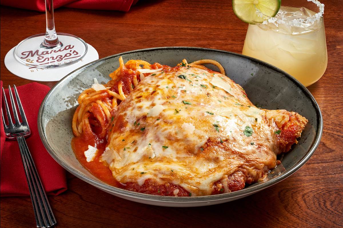 - Enjoy 20% off Pollo Alla Parmigiana – Lightly-breaded chicken breast, tomato sauce, fior di latte mozzarella, parmagiano-reggiano, and spaghetti pomodoro