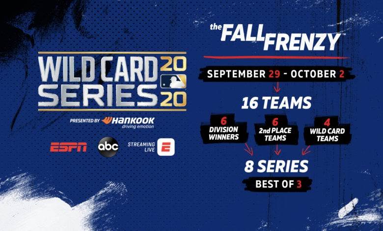 ESPN will exclusively televise seven of the eight 2020 Major League Baseball Wild Card Series presented by Hankook Tire as part of the expanded MLB Postseason, from Tuesday, September 29 through Friday, October 2.